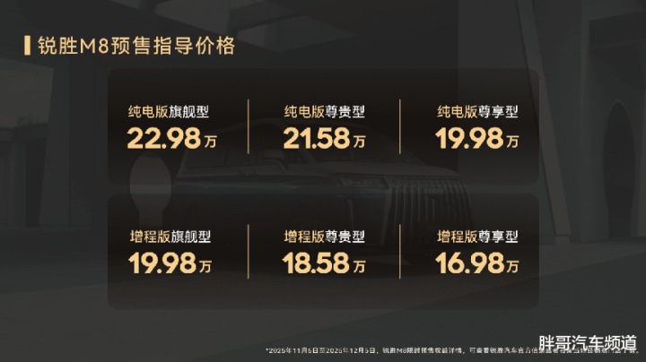作为北京汽车制造厂孵化的独立MPV品牌,锐胜汽车持续深耕MPV细分市场,敏锐洞察用户未被满足的真实需求与市场空白。锐胜M8的推出,为用户提供了更全面的选择,进一步提升了出行的品质与体验。目前,锐胜M8预售已经开启,能否获得市场青睐,我们拭目以待!